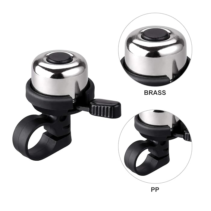 - ✔ [Detalles y Beneficios]: El timbre de la bicicleta tiene práctico y bonito diseño detallado. Muelles de precisión de acero inoxidable para tonos de timbre fuertes y duraderos; tornillos fijos de precisión que no se caerán fácilmente; todas las piezas, estructuras de sonido, etc. están diseñadas profesionalmente. Ranura ajustable para tarjeta de 22,2 – 31,8 mm, adecuado para muchos tipos de bicicletas.